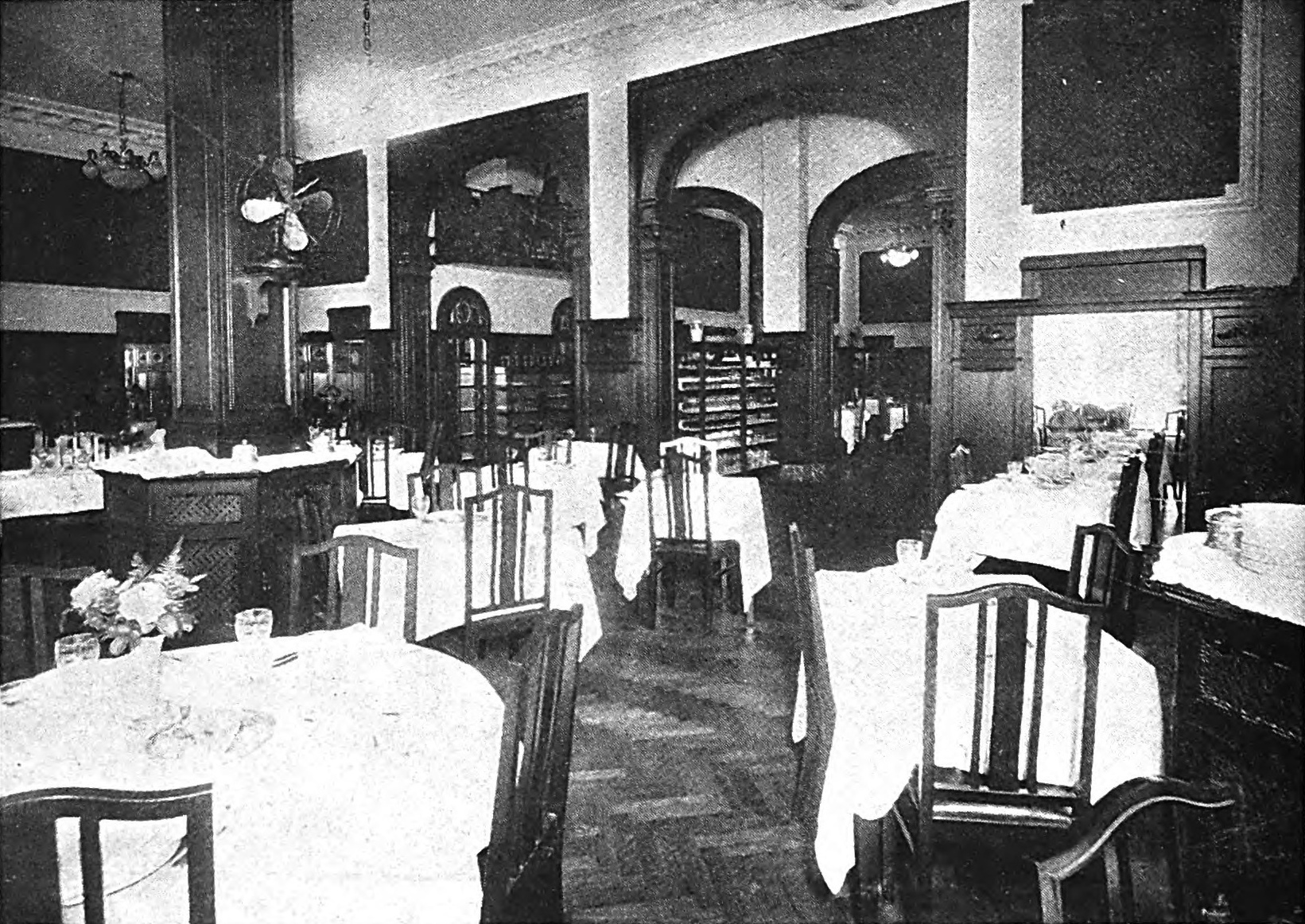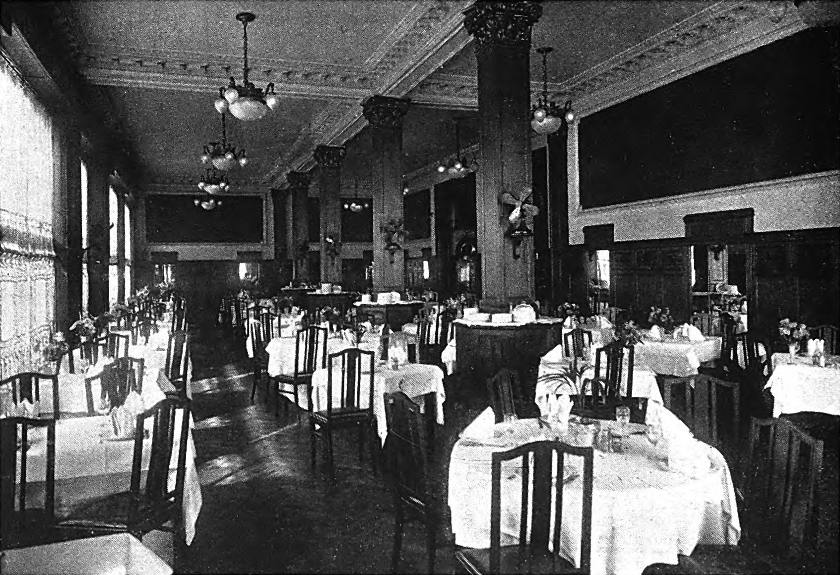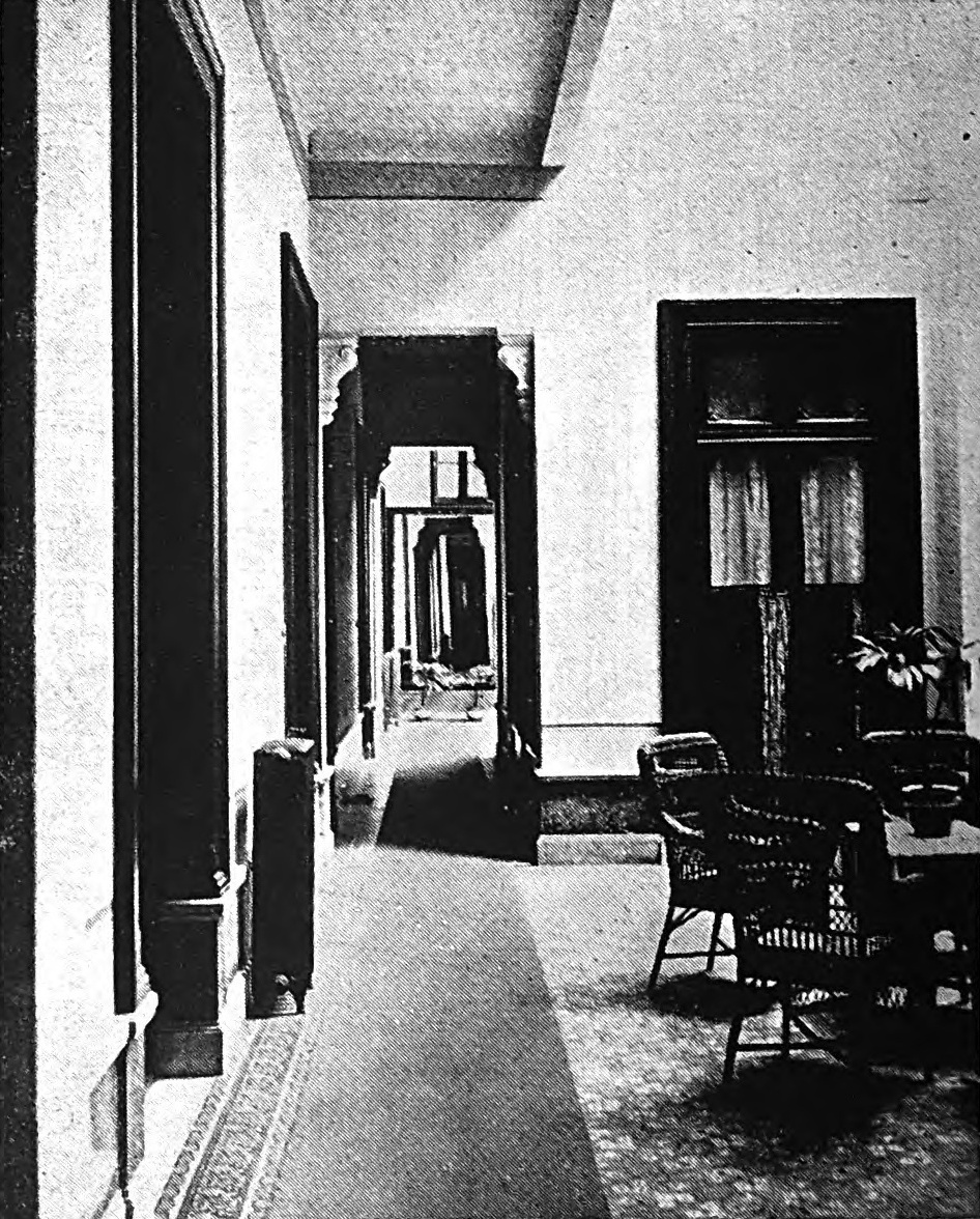 Originalmente estaba destinado a hotel, con restaurante en la planta baja y tres pisos. Posteriormente se añadió un cuarto piso con mansardas.